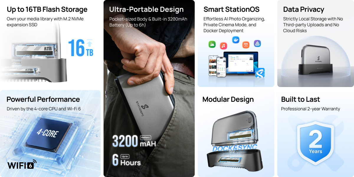 On-the-Go Data Freedom: Built-in 3200mAh battery and pocket-sized for on-the-go data backup. Access your data via encrypted P2P even when traveling.